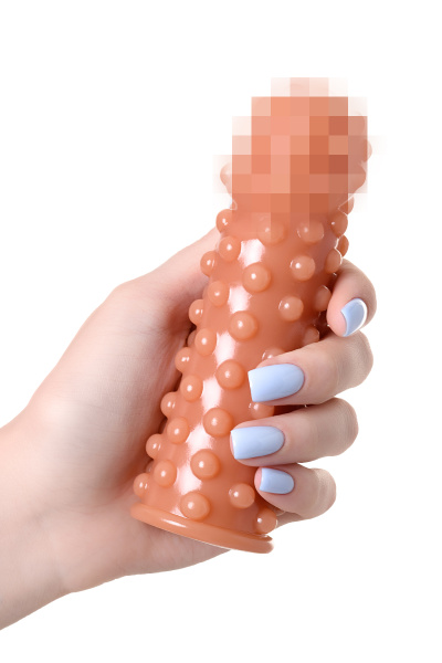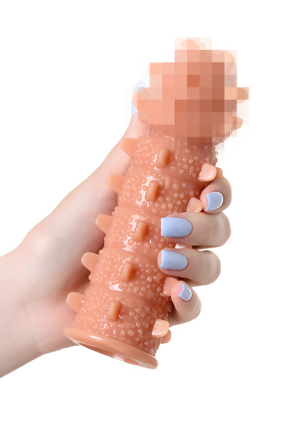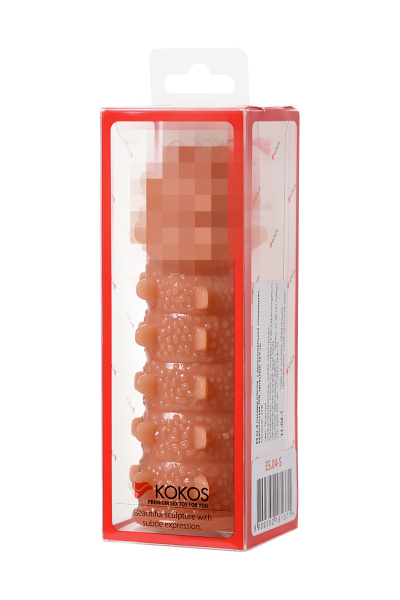 Насадка KOKOS реалистичная с дополнительной стимуляцией, TPE, телесная, 15.6 см с мягкими шипами
