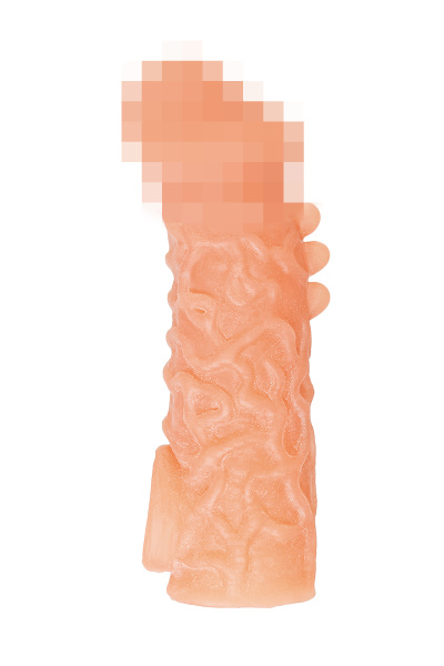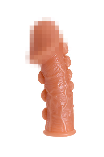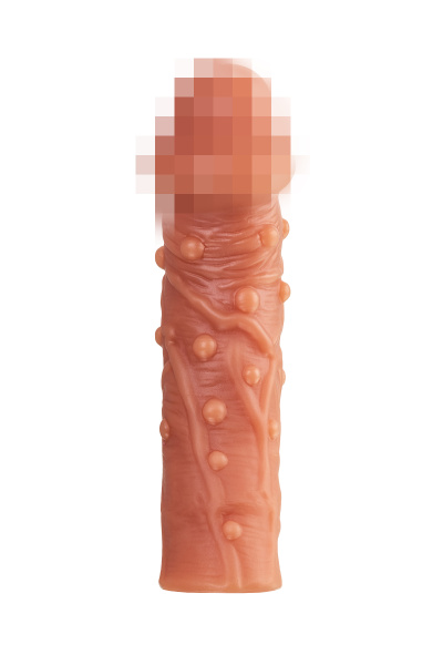 Насадка KOKOS реалистичная с дополнительной стимуляцией, TPE, телесная, 15.6 см с тремя бугорками